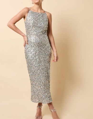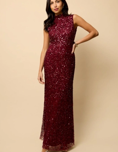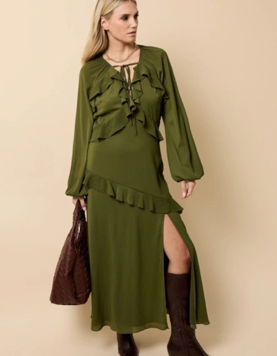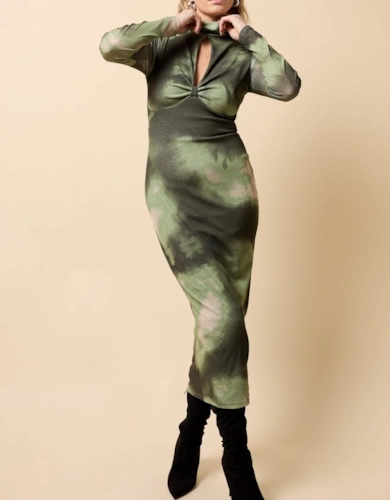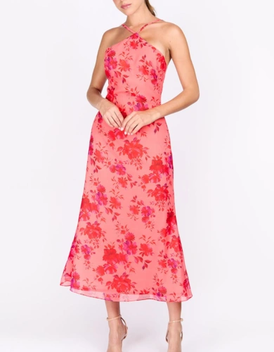 Iska Tomato Lace Twist Detail Midaxi Dress