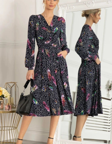 Jersey Crepe Ruched Long Sleeve Mini Dress