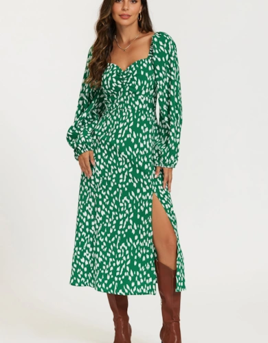 Champagne Sparkle Long Sleeve Draped Waist Wrap Midi Dress