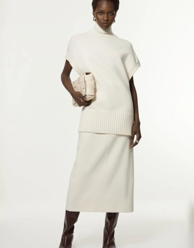 Drapey Crepe Hanky Hem Eyelet Detail Maxi Skirt