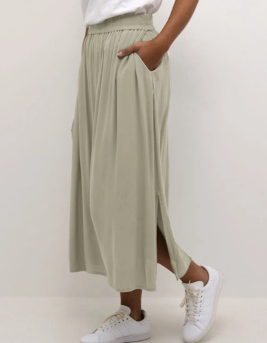 Light Brown Shirring Waist Tiered Maxi Skirt