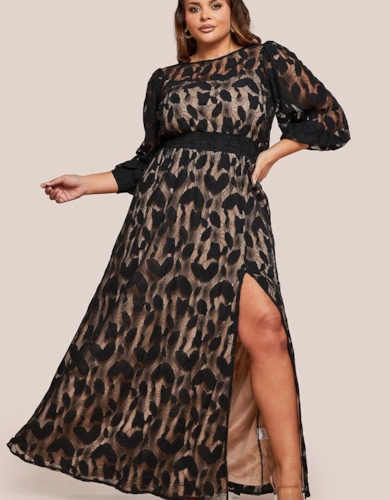 Amelia Graham Burnout Split Woven Prom Strappy Maxi Dress