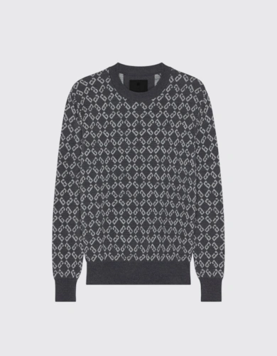 Lyle & Scott Ribbed Jacquard Tartan Crew Neck - X977 Jet Black/Mid Grey Marl