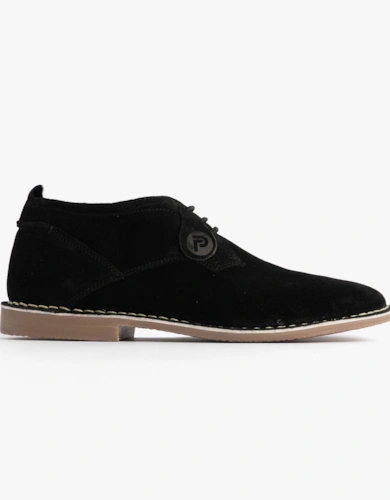 Jaden Mens Leather Wide (E) Fit Touch Fasten Shoes Black