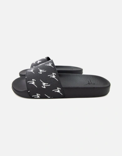 Boss Orange Aryeh Mens Italian-Made Slides With Large Logo Detail Nos - Black 002