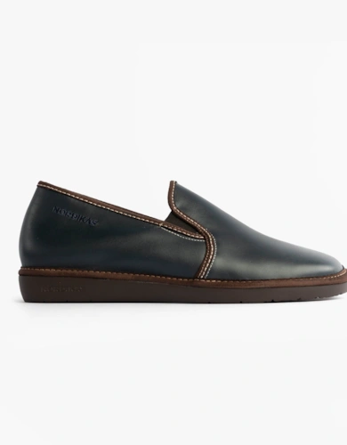 Brenan Bear Mens Moccasin Slippers Navy Suede