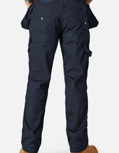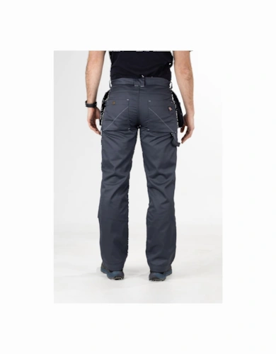 Stretch Organic Broken Twill Cotton 'Old' Effect Cargo Trousers In Black
