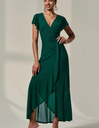Long Sleeve Ruched Mesh Midi Dress