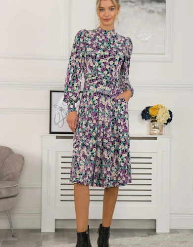 Petite Pleated Twill Midi Dress With Sweetheart Neckline
