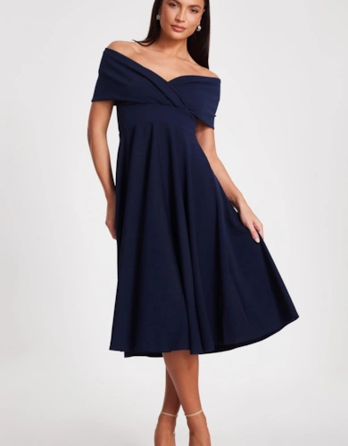 Plus Lace Midi Dress With Puff Sleeve