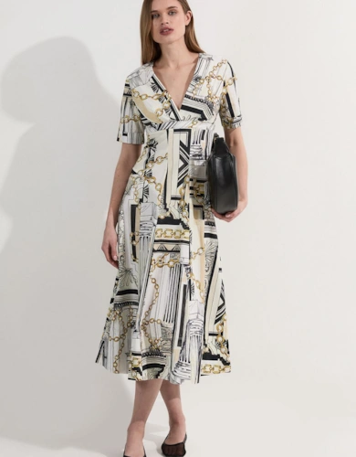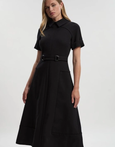 Clean Tailored Square Neck Full Skirted Midi Dress