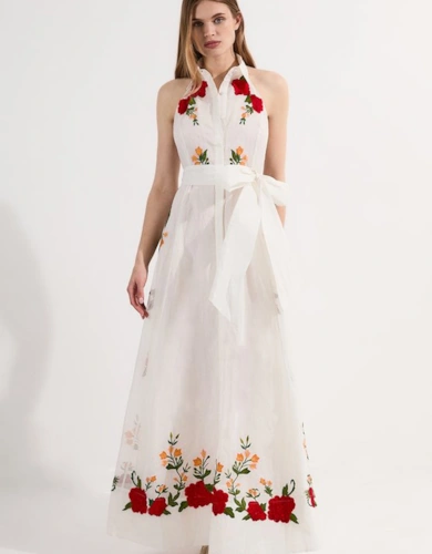 Tailored Twill Lace Mix Zip Front Midi Dress