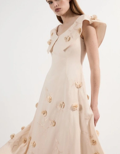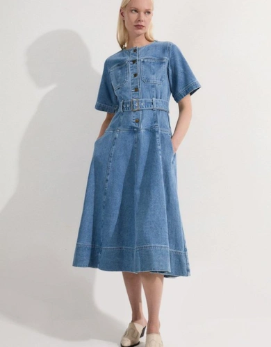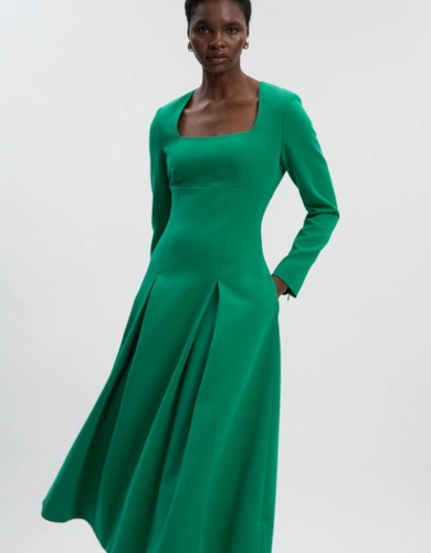 Black Waist Ruched Metal Trim Sleeveless Midi Dress
