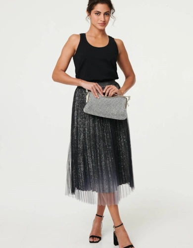 Floral Semi Sheer Mesh Layer Midi Skirt