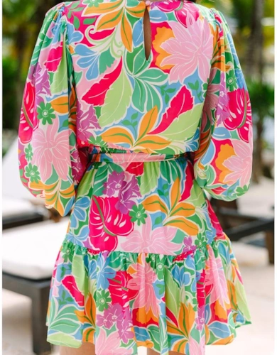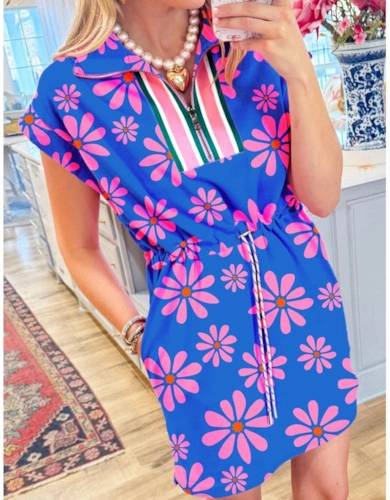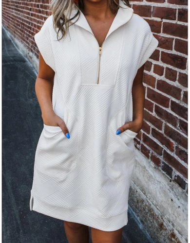 Mineral Red French Terry Zipped Collar Sleeveless Drawstring Waist Mini Dress