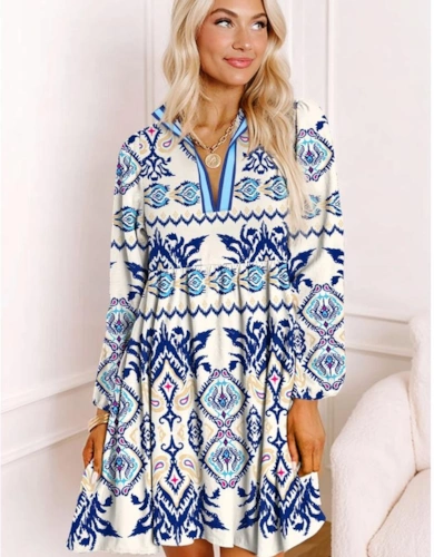 Burgundy Floral Embroidered Tassel Tie Waist Long Sleeve Mini Dress