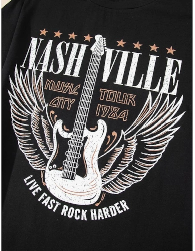 Black Nashville Guitar Print Crew Neck T Shirt Mini Dress
