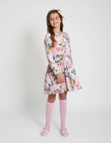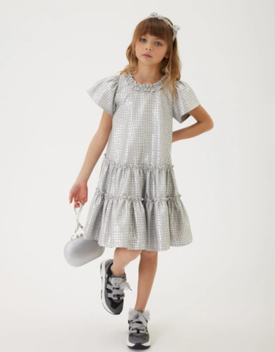 Girls Houndstooth Jacquard Dress In Silver