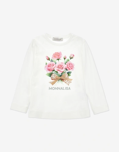 Girls Floral Ruched T-Shirt In Ivory