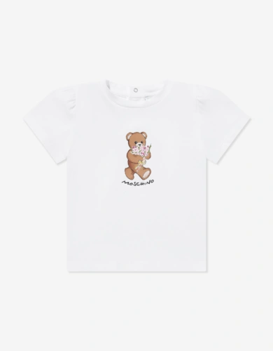 Baby Girls Floral Bear Dress In Ivory