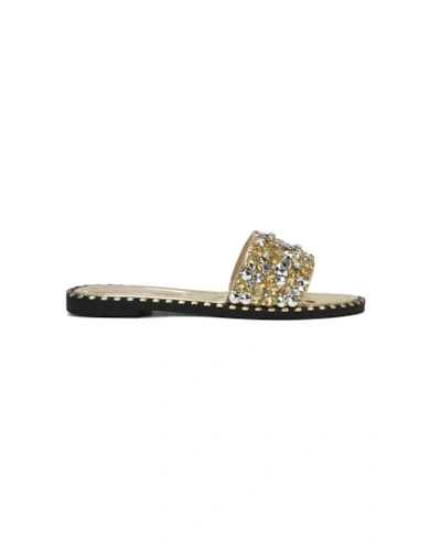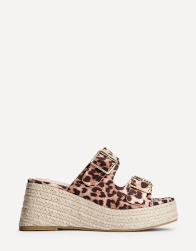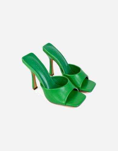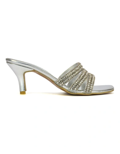 'Georgia' Wedge Heel Diamante Square Peep Toe Heeled Mule Sandals