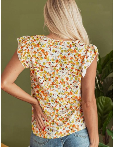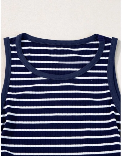Beau Blue Mineral Wash Denim Frayed U Neck Sleeveless Top