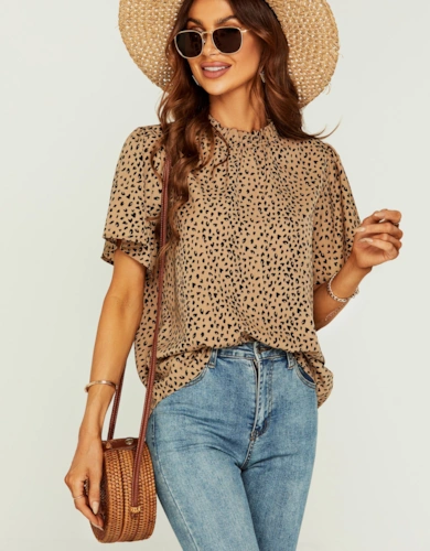 Animal Print V-Neck Tunic Stretch Top