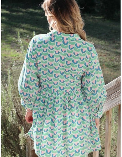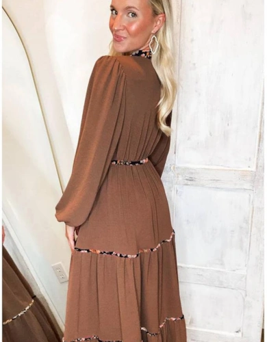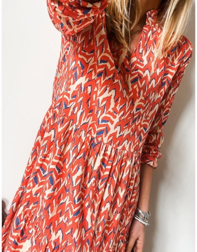 Rose Tribal Paisley Print Ruffled Sleeve Notch Neck Midi Dress
