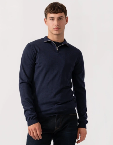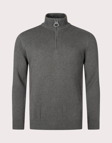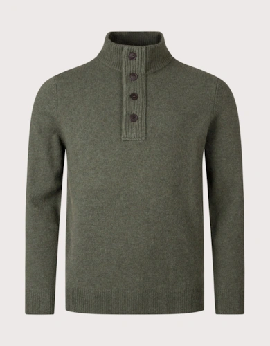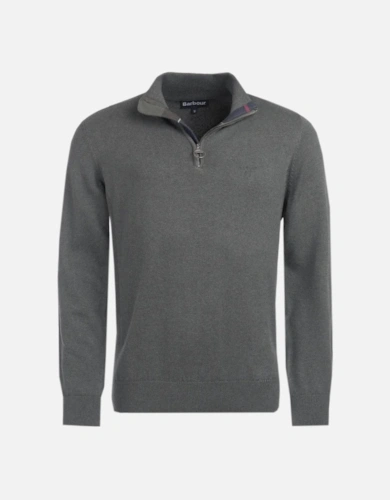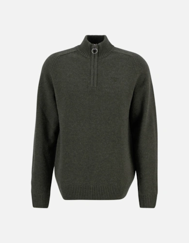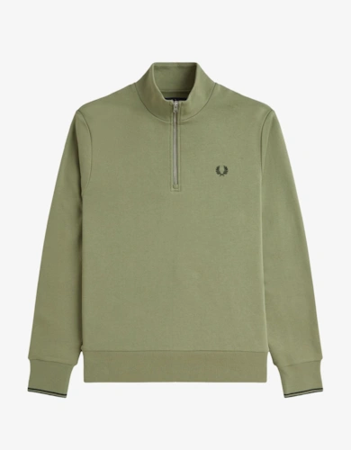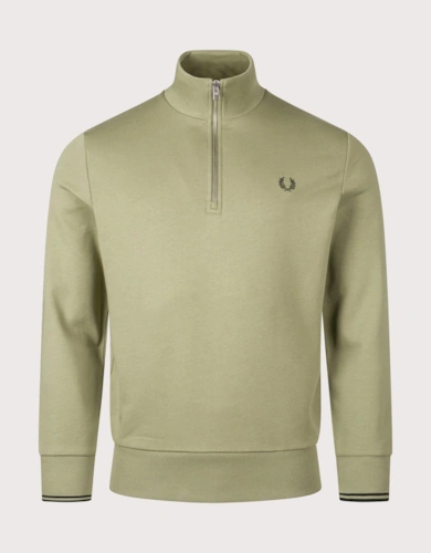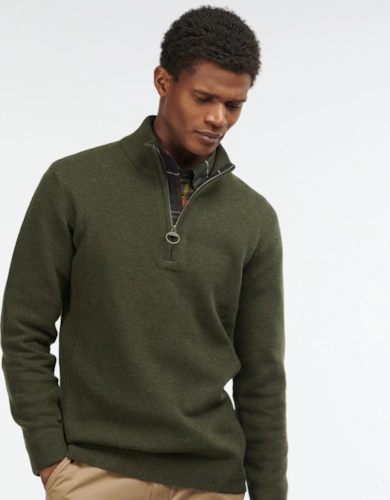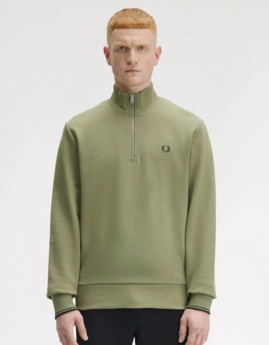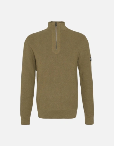 Cotton Mens Half Zip Jumper - Olive Marl