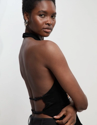 Digital Ophelia Polished Tailored Open Back Hem Detail Mini Dress