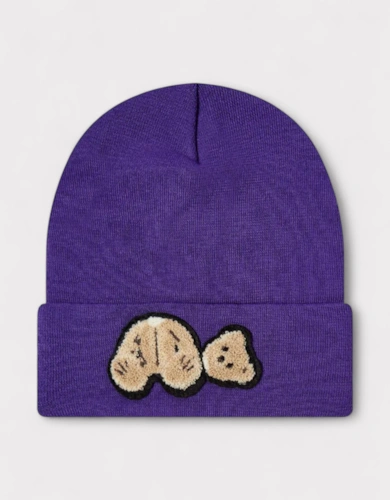 Bear Printed Beanie Purple