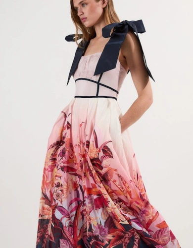 Embellished Detail Plunge Collared Woven Maxi Dress