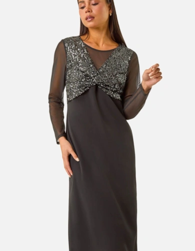 Petite Embellished Figure Form And Chiffon Sleeve Midi Dress