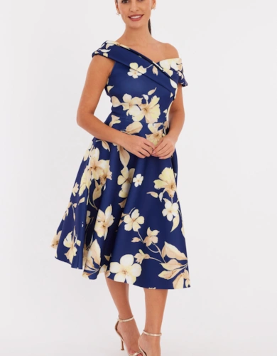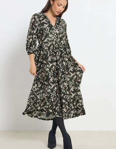 Petite Applique Organdie Buttoned Woven Midi Dress