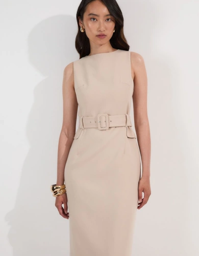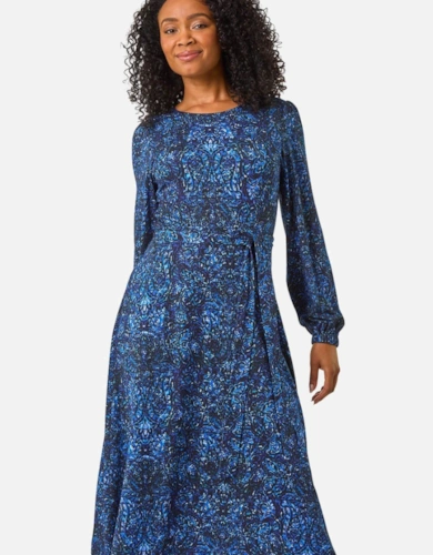 Womens/Ladies Spotted Front Tie Petite Sleeveless Midi Dress