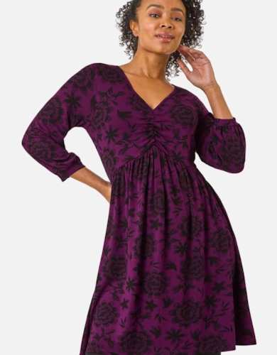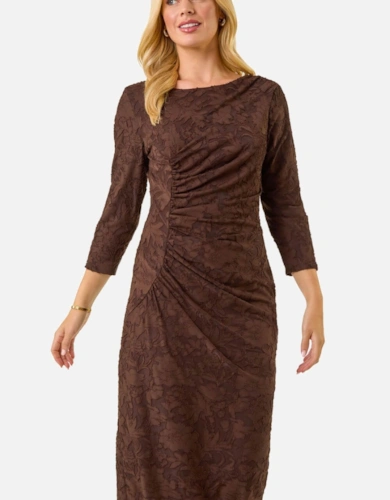 Petite Ombre Printed Mesh Ruched Long Sleeve Maxi Dress