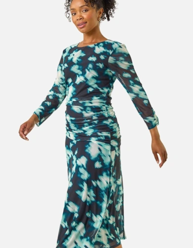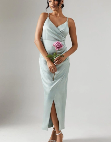 Petite High Neck Embellished Ruched Georgette Woven Maxi Dress