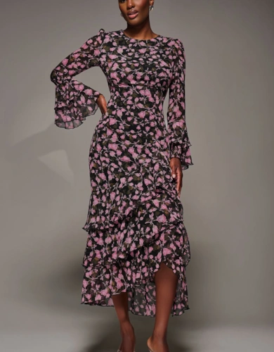 Womens/Ladies Tiered Chiffon Front Tie Tall Midi Dress