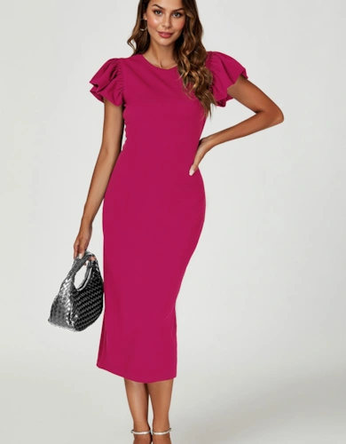 Janelle Colour Block Dress In Magenta