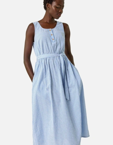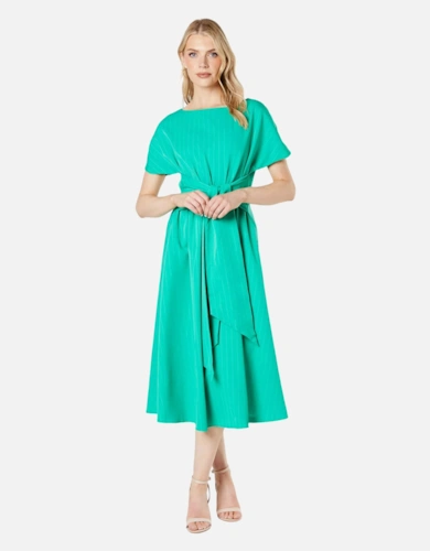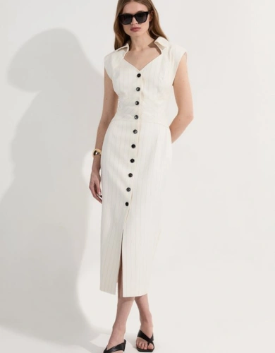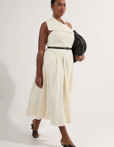 Pinstripe Corseted Tailored Pencil Midi Dress