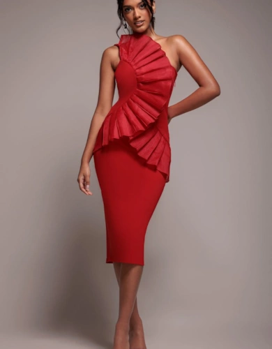 Petite Premium Woven Stripe Tailored A-Line Midi Dress