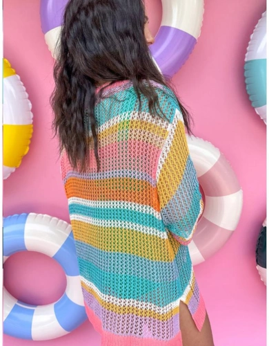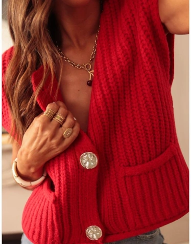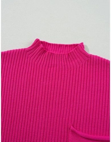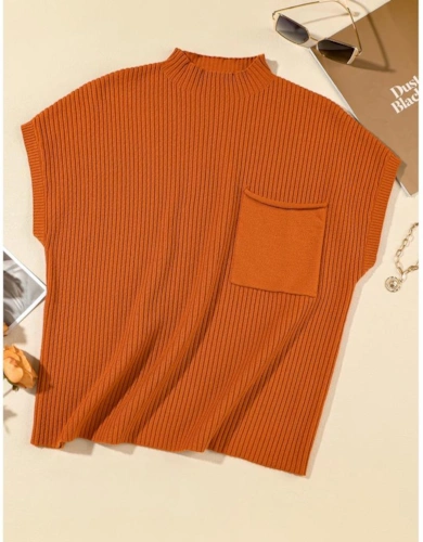 Gold Flame Patch Pocket Ribbed Knit Short Sleeve Sweater