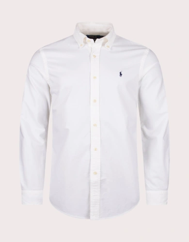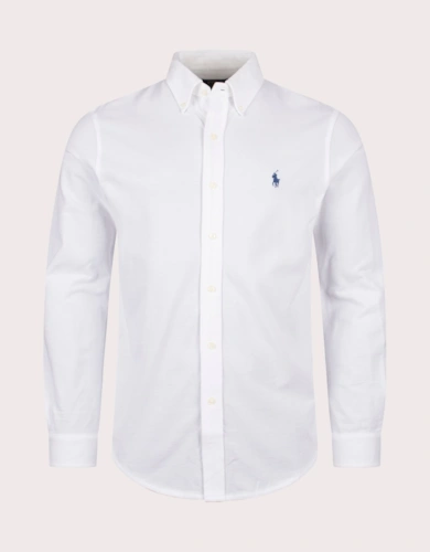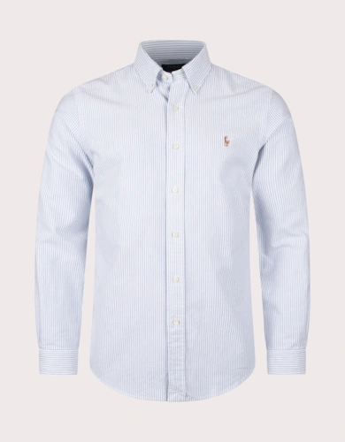 Custom Fit Striped Stretch Oxford Shirt Blue & White