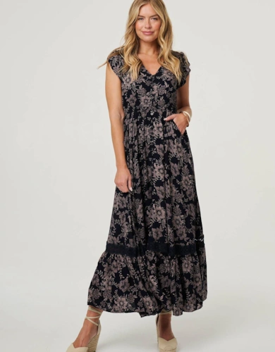 Black Metallic Print Full Sleeve Maxi Dress