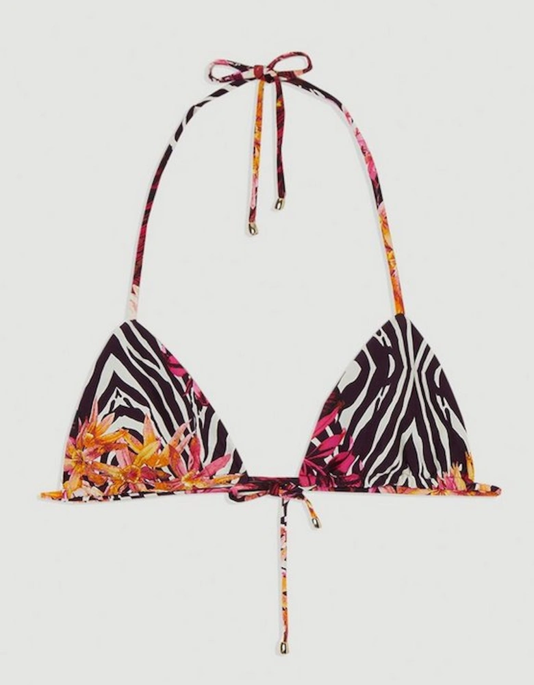 Print detail triangle bikini top