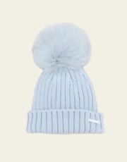 Stay warm and stylish with the Pangasa Powder Blue Knit Faux Fur Hat, designed for comfort and elegance.