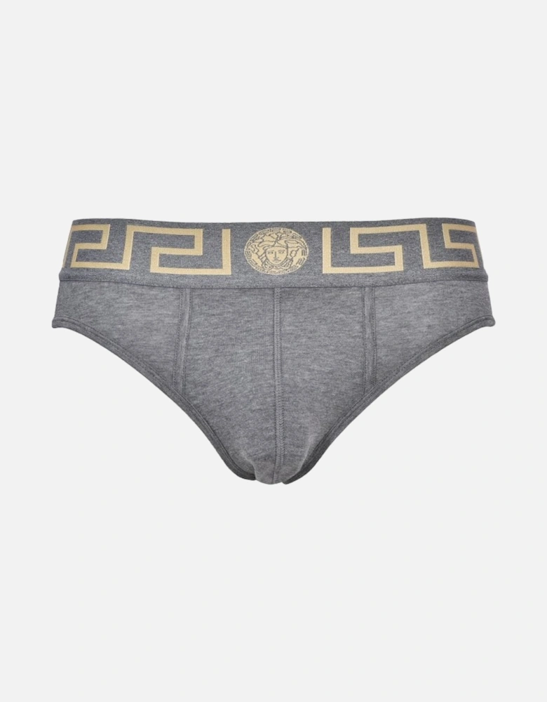 A pack of 2 low-rise briefs in black and grey featuring a Greca border and central Medusa motifs. Made from soft, organic cotton with an elasticated waistband.