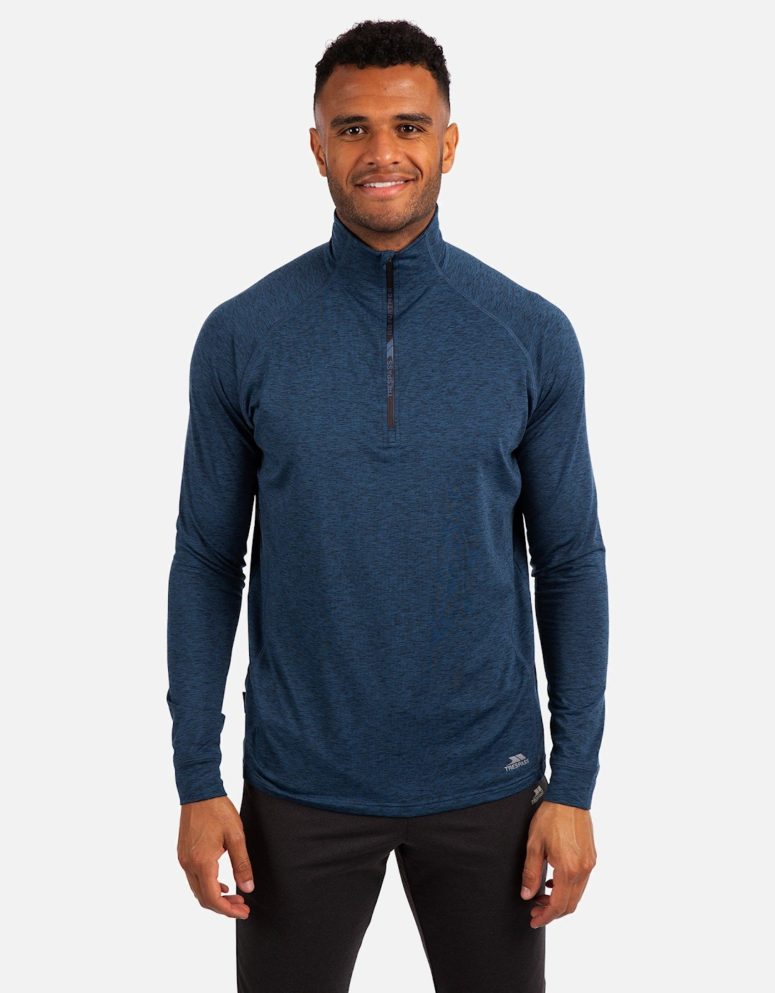 The Trespass Mens Harold Half Zip Fleece Top is crafted from a blend of 92% polyester and 8% elastane, featuring a quick-dry fabric technology that ensures comfort and performance. The design includes a stylish half zip, standing collar, and long sleeves, making it a perfect choice for outdoor activities.
