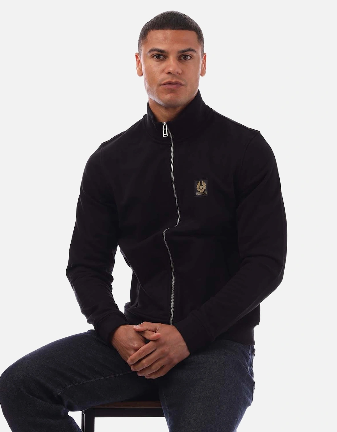 Mens Belstaff Cotton Fleece Full Zip Sweatshirt with a high zip-through stand collar, ribbed cuffs, and two side pockets, crafted from soft cotton loopback jersey for a comfortable fit.