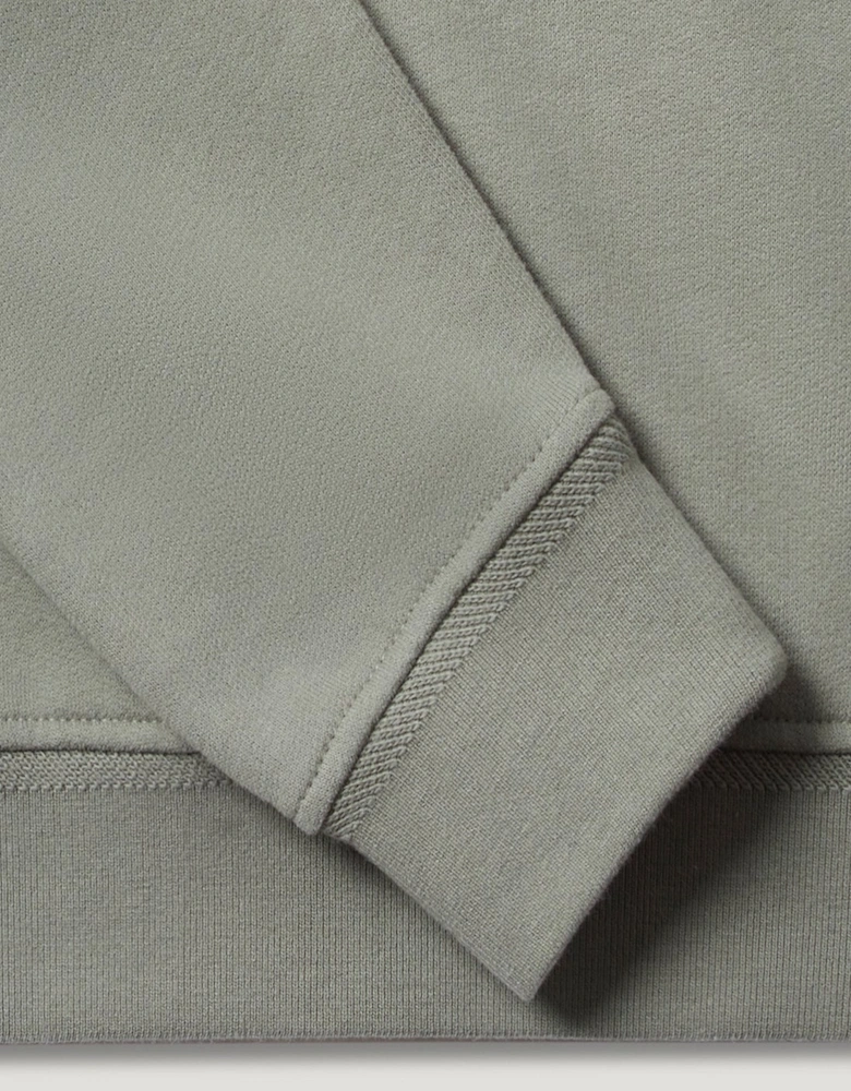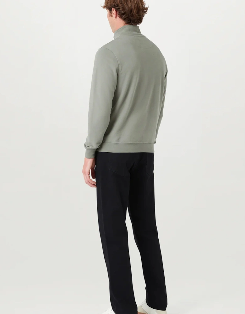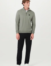 The Belstaff quarter zip sweatshirt in sage green is crafted from soft fleece cotton with a high zip collar and features the iconic Belstaff badge on the chest.